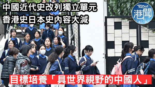 施政報告提出「優化」的高中兩史課程框架昨日同步出爐。經修訂的歷史科加入目標培養學生成「具備世界視野的中國人」,中國近代史改列獨立單元,涉中共建黨建國等,原屬獨立篇章的香港及日本史內容則大減及分散在不同單元。中史和歷史科經調整後的課程,將於兩年後、2027/28學年的中四級起全面推行,適用於2030年和之後的中學文憑試(DSE)。教育局表示,調整歷史科課框旨在加強世界史與國家歷史的連繫,了解國家在近現代史上的角色、作用和貢獻。局方亦指,今次調整已考慮到部分學校同時開辦中史和世史科,「平衡並突顯兩科『兼容並蓄、內外聯通』的互補特色」。 中國史佔課時90小時 教育局:與中史科兼容並蓄歷史科課程原不設選修單元,包含引言「現代世界的孕育」,以及兩大主題,分別教授20世紀亞洲的現代化,以及國際衝突和合作,其中在亞洲現代化主題中原設3個獨立篇章,分別為「中國」、「香港」和「日本及東南亞」。新框架下設5個單元,3個必修,其中包括將中國現代化部分,抽出成為一個獨立的單元3,以「國家走向現代化及成為國際重要成員的歷程」為題,橫跨清末至21世紀,佔90小時課時。對比現行課程及評估指引,單元3新增內容包括中國參加第一次世界大戰、抗日戰爭、中國共產黨創建及中華人民共和國成立等。「新時代中國特色大國外交」、「構建人類命運共同體的理念」及「中國特色社會主義建設及其對世界的貢獻」等新近事件相關內容,亦見於新的中史科課框。 曾爆試題風波 日本史不再獨立成章 改談日本侵華等新框架將香港史融入中國史的單元中,大致以新中國成立為界,建國前內容包括香港淪陷前民眾支援內地抗戰、日佔時期的抗日活動;建國後的內容包括改革開放以來的中港連繫、作為國際航運和金融中心的發展等,同時亦要認識「一國兩制」方針。現行框架原有的香港政治和制度史未見於新課綱。2020年DSE曾爆歷史科中日試題風波。新課框下,日本和東南亞的近代史均未再獨立成章,包括未再詳述日本政經文化等。修改後涉日本內容包括在單元3「解釋日本從20世紀30年代開始發動侵華戰爭的原因」,以及在單元2「20世紀以來的主要國際衝突及對和平的訴求」中分析日本等國的對外侵略如何觸發二戰等。至於列作選修部分的兩個單元,分別講述19世紀中以來的國際合作,以及19世紀中以來的海外華人。前者內容包括國際聯盟、聯合國的成立等,後者以「漂泊與自強」為題,內容包括海外華人社群發展、「祖國對海外華人利益的保護」等。 ▲ 教育局更新高中歷史科課程,計劃2027/28學年的中四級全面推行。(資料圖片) HKET App已全面升級,TOPick為大家推出一系列親子、健康、娛樂、港聞及休閒生活資訊及影片。立即下載︰https://onelink.to/f92q4m追蹤TOPick WhatsApp頻道睇最新資訊︰http://tinyurl.com/3dtnw8f5