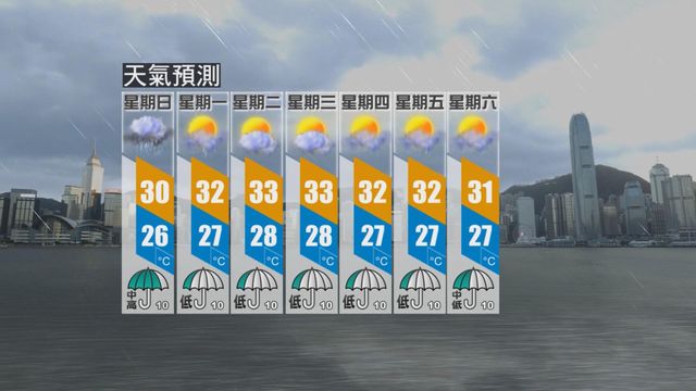 三號強風信號生效,至少維持至今晚十時。幼稚園、肢體傷殘及智障兒童學校停課。天文台指本港風勢下午增強,會評估今晚需否改發更高熱帶氣旋警告信號。麥德姆逐漸靠近,早上風勢和緩,天氣酷熱,市區最高氣溫超過33度,元朗更錄得34.7度。天文台指麥德姆橫過南海北部並逐漸增強。天文台署理高級科學主任江如秋說:「按照現時預測,麥德姆會逐步增強,並移向雷州半島一帶,天文台會視乎麥德姆的強度、其烈風區與珠江口的距離,以及本地風力變化,評估是否需要在今晚改發更高熱帶氣旋警告信號。本港稍後轉多雲,有幾陣驟雨及雷暴,驟雨逐漸增多。」天文台預料周日風勢頗大,有幾陣狂風驟雨,海有大浪及湧浪,而中秋節及隨後一兩日,部分時間有陽光,有一兩陣驟雨。u003ca href=\"https://news.tvb.com/tc/live/liveevent2\" target=\"_blank\" rel=\"\"u003e熱帶氣旋麥德姆預測路徑u003c/au003eu003ca href=\"https://www.hko.gov.hk/tc/wxinfo/currwx/fnd.htm\" target=\"_blank\" rel=\"\"u003e九天天氣預報u003c/au003e