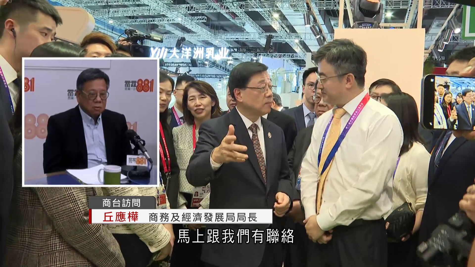 「內地企業出海專班」在上海進博會舉行推介大會,不單有企業分享「出海」經驗,還有投資推廣署及入境處等即場提供諮詢服務。商務及經濟發展局局長丘應樺稱,會後不少企業主動接觸,表達「出海」意願。丘應樺:「一提到出海,人人都有興趣(非常雀躍),很多省市的政府官員馬上跟我們有聯絡,提出想有這樣的方案,大家如何合作。不是所有企業都能『出海』,如果全內地有5,000萬家中小企,如何帶500萬家出去呢?都要視乎我們的市場、國家與香港實際的需要,有甚麼企業可以出去,可以帶動香港的經濟,亦可以幫助到內地經濟發展,這是最重要的考慮點。」