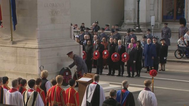 英王查理斯三世出席在倫敦舉行的陣亡將士悼念儀式,紀念在戰爭中喪生的英軍及平民。倫敦大笨鐘於周日早上11時響起,查理斯三世在國會大樓外率領數千名軍人、老兵和政要,包括首相施紀賢及多位前首相等,為死於戰亂的英軍及平民默哀兩分鐘,然後輪流向戰爭紀念碑獻花。王后卡米拉及王妃凱特等王室成員,則在外交部大樓露台觀看儀式進行。第一次世界大戰於1918年11月11日早上11時結束。英國每年的陣亡將士悼念儀式,訂於最接近11月11日的星期日舉行,最初是記念第一次世界大戰結束。其後一併悼念二戰及其他衝突中,喪生的英軍及平民。