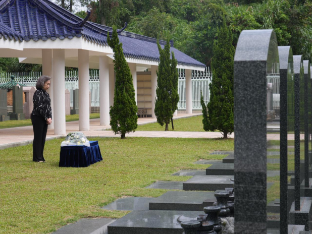 楊何蓓茵到浩園獻花 悼念因公殉職公務員