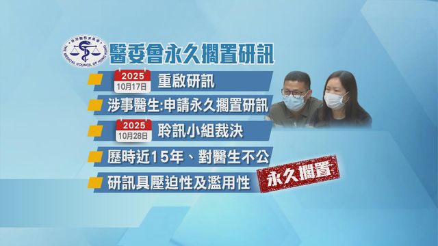 一對內地夫婦向醫委會投訴,指醫生疏忽導致兒子腦癱及四肢殘障,醫委會相隔15年開庭,星期二宣布永久擱置聆訊,事主夫婦認為裁決不公,不排除提出司法覆核,醫委會秘書處沒有回應。 投訴人黎先生說︰「我們很驚訝、非常失望,是極度憤怒。」提出投訴的黎生、黎太,在社區組織協會陪同下召開記者會。事發在2009年,黎太從內地來港產子,在浸會醫院分娩期間發高燒,後來確認感染乙型鏈球菌,兒子出世後亦曾發高燒、抽筋,送入伊利沙伯醫院搶救,他最終腦癱及四肢殘障。他們2010年向醫委會投訴,指涉事兒科醫生疏忽。2016年7月首次開庭,涉事醫生一方當時提出,需時處理證據,申請押後研訊獲批。聆訊到本月中重啟。涉事醫生在研訊首日,隨即申請永久擱置,指案件歷時近15年、對其不公。小組經商議後,認為研訊拖延數年,是「具壓迫性及濫用性」,同意永久擱置。 黎先生稱︰「那幾年一直也沒有解釋予我們聽,為何拖延。你這件事,醫委會秘書處自己沒工作,也是醫委會自己的問題,我們是受害者。醫生指對他不公,那對我們公平嗎?」協助他們的幹事彭鴻昌指,醫委會永久擱置的裁決不合理。 社區組織協會幹事彭鴻昌說︰「有提及指因原來專家證人撤任,所以要找一個新的專家證人,所以似乎要些時間再跟進,原本的專家證人是蘇景桓兒科醫生,但在過去兩個研訊日,我們仍見到蘇景桓醫生擔任專家證人,即他們沒有更換專家證人。醫委會其實要指導或督導秘書處工作,秘書處有這些失職,作為醫委會本身似乎也有失責情況。」他們不排除就案件提出司法覆核。