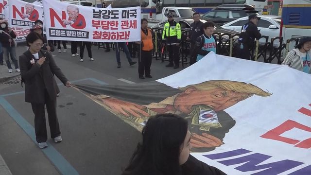 南韓慶州有反對美國特朗普的示威。數百名南韓人在慶州上街,指責特朗普「獅子開大口」,就像盜賊剝削南韓。根據南韓和美國達成的經貿協議,韓方會向美國投資3,500億美元,折合約二萬七千億港元,而美國對南韓汽車徵收的關稅率,由百分之廿五降至百分之十五。在半導體領域,將適用於同台灣相當,不處於不利地位的關稅水平。有評論指3,500億美元投資,對南韓來說數額太大,而且大部分是以現金投資的方式,會令南韓經濟不穩定。