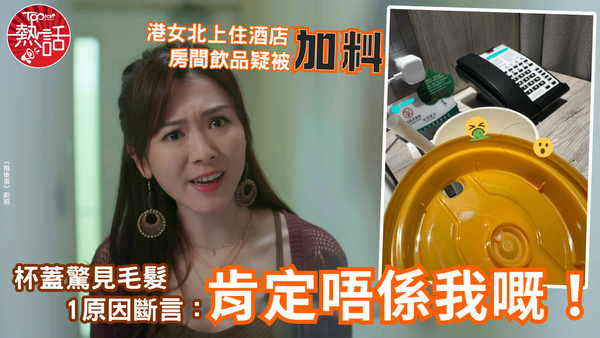 酒店房間內的飲品也能被動手腳?近日,有港女在Threads發帖,稱北上住酒店時,外出再回到房間內後發現,尚未飲用完的飲品杯蓋上附著1條疑似人體毛髮,因1事令她斷定被執房人員「加料」,細思極恐之下公開此事,呼籲網民小心。北上住酒店|港人廣州住酒店搭𨋢疑被人踩線 察覺有異堅不回房對方竟咁做北上住酒店|酒店房間飲品杯蓋驚見黑色毛髮樓主以「小心大陸酒店執房」為題發帖,指日前在內地住酒店時,趁午餐購買了1杯飲回房間享用,但後來發現拿錯細飲管而直接打開杯蓋應用。樓主指因為太飽並未飲完,便「冇冚返個杯蓋」直接將飲料放在枱面而後外出。																										▲ 酒店房間飲品杯蓋驚見黑色毛髮。(取自Threads)樓主再次回到房間時,「執房嗰個好好尾幫我冚返杯嘢飲」,然而她再次打開飲料杯驚訝發現,杯蓋上有1條黑色的毛髮,但不確定是否為人體毛髮。而樓主表示「我自己做咗laser(激光脫毛)就肯定唔係我嘅,都幾肯定杯嘢俾人加咗料」,樓主覺得此事細思極恐,故發帖呼籲「一個女仔住酒店真係小心啲」。																										▲ 港女呻「成件事好恐怖」。(《紅衣女孩》劇照)北上住酒店|網民震驚:好彩發現到!帖文引起熱議,網民對此亦十分震驚,「哇,勁噁心,好彩發現到」、「出門在外通常開咗冇應晒食晒,離開咗再返來都唔會要,晒嘢都咁話」、「去邊都唔執房,之前澳門做嘢兩個禮拜都係唔執,淨係問加嘢,唔中意有人入去搞我啲嘢」、「一離開得耐就唔會再飲,細個聽得多加料個案」。人妻捉姦|北上住酒店公務員人夫1招脫身隔籬房偷食 人妻捉姦斷正鬧爆:咁無道德!