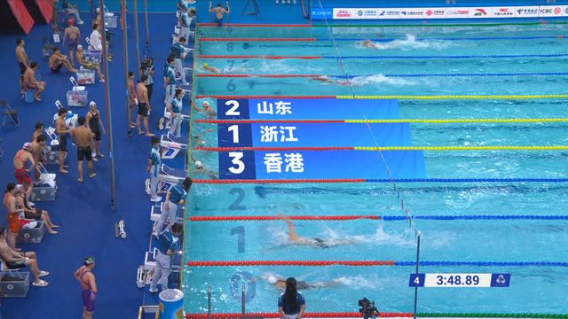 全運游泳,港隊晉級男女子4x100米混合泳接力決賽。另一港將楊凱晴,同樣在200米蝶泳初賽過關。女子200米蝶泳初賽,44位泳手分成五組,港將楊凱晴被編入第四組第八線道。合計五組,成績最好16位泳手晉級準決賽。楊凱晴游完半程,在同組八人中排第七。她早前出戰100米蝶泳,順利游入準決賽,最終以第十名完成。今場途程長一倍,小組排名不要緊,最緊要是時間,這位港隊代表最後50米稍稍加速,結果游出2分12秒79,小組第四,以總成績第十名出線。另一港將文雪兒,被編入第一組第三線道,她以2分20秒21完成,小組第八,總成績不足以入準決賽。同組第八線道的東京奧運金牌得主張雨霏,游出2分10秒68,小組第一,總成績第二名晉級。轉到男女子4x100米混合泳接力初賽,港隊被編入第二組第三線道,由張心悅、張智傑、古逸豪,以及畫面中的自由泳代表李芯瑤組成。他們造出3分54秒11,小組第三,總成績第六名入決賽。