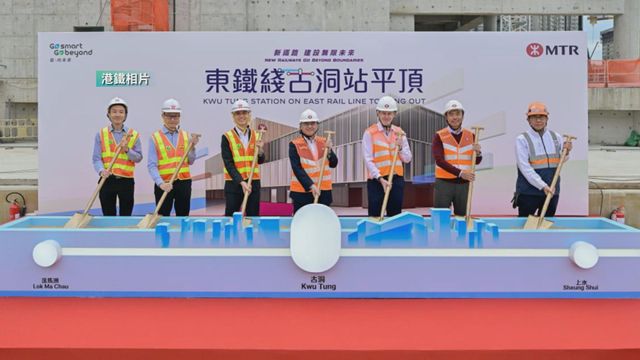 港鐵東鐵綫古洞站舉行平頂儀式。運輸及物流局常任秘書長丘卓恒、港鐵行政總裁金澤培等出席儀式。古洞站已安裝全部90對月台幕門,將繼續內部裝修及機電屋宇設備,包括安裝升降機、扶手電梯、通訊設施、信號系統等,並測試不同系統之間的聯通,確保運作暢順。古洞站位於落馬洲站及上水站之間,將成為北環綫的主要轉車站,目標2027年完工。