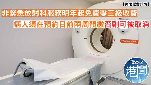 【放射科/公院加價/醫管局/HA】公院在明年元旦起加價,當中非緊急放射科服務將由免費變為分三級收費,價錢介乎250至500元;醫管局亦將引入預繳款項機制,要求病人必須便在預約日期前14日繳費,否則預約將被自動取消。局方指,新安排有望將電腦掃描造影的輪候時間,由現時約兩周減至一周。醫管局質素及安全總監黃立己指,現在存在「缺席預約」情況,以電腦掃描造影及磁力共振(MRI)掃描造影為例,約一成病人最終沒有使用獲安排的預約服務,主因包括病人已轉往私營機構接受服務、病情好轉而毋須檢查等,但相關人士均未取消預約,故局方決定明年起在「非緊急放射科服務」引入共付收費模式,以免資源浪費。但他強調,放射科服務收費仍維持約90%高度資助,病人僅需支付約一成費用。黃立己指,目前「非緊急放射科服務」覆蓋在急症室診症後,或病人在出院後所進行的放射科服務,亦包括門診病人在診症後進行的放射服務。新收費將分為三級,當中「基礎項目」內的X光為免費;「進階項目」的螢光透視、超聲造影、乳腺造影(乳腺X光造影)等收費為250元;「高端項目」的電腦掃描(CT)造影、乳腺造影(介入放射)等收費500元。他指,收費是按照人力、時間、儀器成本資源投入等制訂。經醫管局評估,接受CT的病人中約6成可免費檢查、超聲造影服務中約2成病人免費、磁力共振服務中則約1成病人免費。非緊急放射科服務收費項目項目放射科服務類別費用基礎X光免費進階螢光透視$250超聲造影*乳腺造影(乳腺X光造影)*高端電腦掃描造影$500乳腺造影(介入放射)*血管造影及血管介入放射非血管介入放射磁力共振掃描造影核子醫學正電子電腦斷層掃描*乳腺造影相關服務分項收費