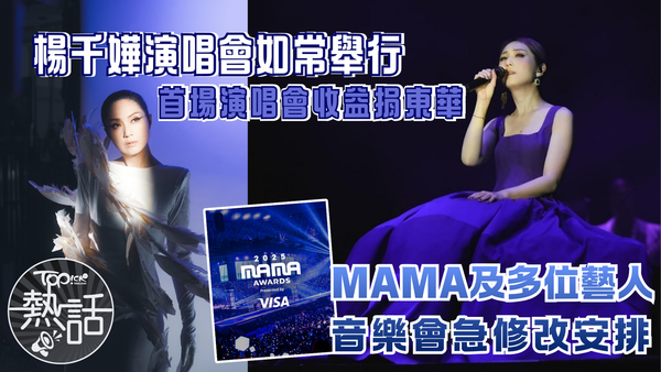 【大埔宏福苑五級火 / 楊千樺演唱會 / MAMA】大埔宏福苑昨日(26日)發生致命五級火,火勢猛烈並迅速蔓延至其他樓宇,傷亡慘重,目前已造成44死,279人仍失聯;火勢燃燒逾15小時未完全撲滅,少部分單位仍冒火光,全民持續關注。本周有多個演唱會及頒獎禮將在香港舉行,包括楊千樺演唱會、英皇娛樂旗下藝人3場演唱會及MAMA2025頒獎禮等,因此次火災事故作出緊急調整與應對措施,楊千樺將捐出首場演唱會收益及左右周邊產品盈利。大埔宏福苑五級火.不斷更新|多個部門及社福機構支援 一文睇清社區支援、交通資訊整合 ▼點擊圖片放大 +8 +7 大埔宏福苑五級火|楊千嬅演唱會如常舉行 首場演唱會收益捐東華《楊千嬅Live MY LIVE 2025演唱會》主辦方今日(27日)午後發聲明表示,原定於29日(星期六)一連六場的演唱會將如期舉行,但會取消演唱會的煙火特效。首場演唱會門票收益及所有演唱會周邊產品盈利將全數捐出,支援火災救援及災後重建工作;並呼籲圈中好友及歌迷將原定於購買花籃的款項,捐贈用於救災用途。大埔宏福苑五級火|MAMA緊急改修改大會內容 周潤發、楊紫瓊確定不出席將於明日及後日(28日、29日)與啟德體育園舉行的(「MAMA音樂頒獎禮」(Mnet Asian Music Awards),在火災發生後,大會進行緊急會議,決定將如期舉行頒獎禮,但會以低調莊重的形式舉行,演出內容亦會大幅修改。據指,大會可能取消紅毯環節,並在開場增設默哀儀式;而韓媒報道稱本場典禮的重磅焦點嘉賓,周潤發及楊紫瓊已確定不出席。 ▼點擊圖片放大 +6 +5 大埔宏福苑五級火|多位藝人音樂會宣布延期另外,英皇娛樂宣布,旗下藝人原計劃於本周舉辦的音樂會將延期舉行,包括28日《Lunatique - Arvin.T》、29日《許靖韻 Glowing巡迴音樂會香港站》以及30日《洪卓立探索者巡迴音樂會香港站》,後續具體安排有待公布;《林曉培 X 鄧建明起勢搖滾演唱會》亦延後舉辦。