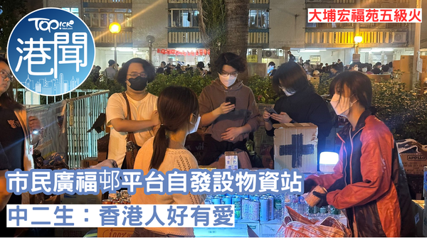 大埔宏福苑五級火|市民廣福邨平台自發設物資站 中二生:香港人好有愛