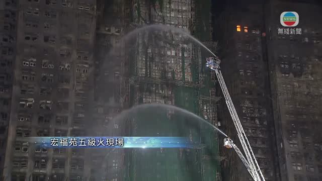 大埔宏福苑五級火,入黑後消防員架起雲梯向火場射水,零星單位仍有火種。u003ca href=\"https://news.tvb.com/tc/local/6926ac1ce435294129276925\" target=\"_blank\" rel=\"\"u003e持續更新|大埔宏福苑外牆棚架五級火u003c/au003e