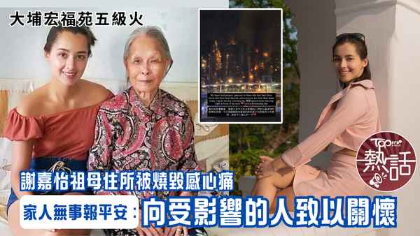【大埔 / 宏福苑 / 五級火 / 謝嘉怡 / 香港小姐】大埔宏福苑11月26日發生致命五級火,火勢猛烈並迅速蔓延至其他樓宇,傷亡慘重,死亡人數增至94人,包括一名殉職消防員。港姐謝嘉怡日前在社交平台心痛發文報平安,表示祖母房屋被燒毀,但家人平安無事,並向受影響的人致以最深切的關懷、哀悼及祈禱。今日(28日)她再發文,稱宏福苑火災令人痛心,但社會各界齊心救援,人性仍散發光芒。大埔宏福苑五級火|翁嘉穗提供免費床褥 江若琳通宵供應免費食物 ▼點擊圖片放大 +9 +8 謝嘉怡26日發顯示動態指祖母的房子被燒毀,而後於翌日報平安,事發時家裡沒人,並向所有受影響的人致以最深切的慰問,哀悼及祈禱:「我向所有罹難者、傷者以及今天失去家園的人們致以最深切的慰問和祈禱。今天我眼睜睜地看著祖母的房子在熊熊烈火中燃燒,真是令人痛心的一天。」謝嘉怡今日再發文,表示火災令人心碎,但見到社會各界紛紛支援,令她感覺港人在關鍵時刻總能凝聚力量,雖然無法抹去傷痛,但身處至暗時刻,人性仍散發光芒。