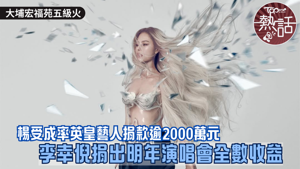 【大埔宏福苑五級火 / 英皇集團 / 楊受成 / 李幸倪】大埔宏福苑遭遇嚴重火災,造成重大傷亡,社會各界深表關切與哀痛。英皇集團日前已透過英皇慈善基金及時為災民送上日常生活物資以解決居民燃眉之急,亦會為接近 2000戶居民提供全新床褥作後續支援。為進一步支持受災居民日後漫長的重建家園之路,集團主席楊受成、副主席楊政龍率領英皇娛樂一眾藝人為受災居民提供關懷與支援,協助他們渡過難關。大埔宏福苑五級火|謝嘉怡祖母住所被燒毀感心痛 家人無事報平安:向受影響的人致以關懷 ▼點擊圖片放大 +3 +2 大埔宏福苑五級火|楊受成、楊政龍率英皇藝人捐款逾2000萬元為支持受災居民的過渡安置及社區重建工作,英皇集團眾志成城,集團主席楊受成透過「楊受成慈善基金」捐款港幣 1,000 萬元、副主席楊政龍以個人名義捐款港幣 100 萬元。除昨日謝霆鋒以「美獅鋒味搖滾美食節」名義捐款港幣 500 萬元外,古巨基、容祖兒、李克勤、陳偉霆、惠英紅、蔡卓妍、鍾欣潼、溫碧霞、曾比特、洪卓立、許靖韻及霍汶希等紛紛響應,全數合共捐款超過港幣 2,000萬元。大埔宏福苑五級火|李幸倪捐出明年演唱會全數收益另外,而於明年 2 月 7 及 8 日舉辦《 GIN LEE 李幸倪 LIVE IN HONG KONG 2026》演唱會的李幸倪在老闆楊受成博士全力支持下,將兩場演唱會的全數收益捐出作救災重建用途。同時,集團亦已展開內部員工募捐行動,與社會同心,一同支援宏福苑居民。集團主席楊受成表示:「眼見這次的無情火災令無數家庭頓失家園與摯親,我感到非常痛心,期盼傷者早日康復,並祝願所有受影響人士能夠逐步走出傷痛,重拾生活。」「亦向不分晝夜投入救援工作的消防、警務、醫護人員及每一位救災人員表達崇高敬意。『逝者安息,生者堅強』,重建家園之路漫長,我們略盡綿力,希望可以與社會大眾一同為受災人士緩解困境,一同渡過難關。」副主席楊政龍表示:「我們於昨天早上已緊急送上應援物資以緩解居民的即時需要,我們亦期望透過是次捐款及動員集團義工,讓集團上下希望能夠出一分力,幫助宏福苑居民跨過難關,協助他們應對當前困境,助力社區重建復元。」 ▼點擊圖片放大 +4 +3 容祖兒表示:「當得知大埔火災事故發生,我感到好震驚、好悲痛,有感世事好無常。這兩天一直持續關注事件,我對殉職的消防員、失去親人、失去家園的宏福苑居民致以最真切的關懷,亦感謝無比英勇的救災人員。我希望受災者可以早日安頓下來,幫助大家重新生活。」蔡卓妍表示:「這次火災帶來嚴重傷亡,受災居民家園被摧毀,我們感到非常難過。對於不幸殉職的消防員及遇難居民致以沉痛哀悼,並感謝各位救火英雄及前線救援人員的努力不懈。」鍾欣潼表示:「我同所有香港人一樣,心繫大埔災區,願不幸離世的居民安息,傷者早日康復。祝願所有受影響人士早日走出陰霾,重拾正常生活。」李幸倪表示:「連日來得知社會各界踴躍捐輸,我很感動老闆支持我想將全數演唱會收益捐出來的想法,希望可以以此行動集結更多力量,協助緩解他們後續重建家園的巨大壓力。」大埔宏福苑五級火|演藝界捐款伸出援手Angelababy(楊穎)向仁濟醫院捐助100萬元,支持「仁濟緊急援助基金」與大埔宏福苑災民並肩同行;鄧麗欣向「保良局扶弱基金-支援宏福苑火災居民專項戶口」捐贈50萬元用於救援及災後重建工作;TVB「無綫電視暨職藝員愛心基金」捐款100萬元,將款項直接交予香港特別行政區政府新成立的「大埔宏福苑援助基金」。