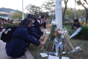 大埔宏福苑五級大火導致128人死亡、79人受傷,多具遺體未能確切辨認。 多名市民到宏福苑封鎖線外圍獻花,悼念死難者。有人留下「天祐大埔」的紙條,亦有市民放置供嬰兒用的奶咀及蠟筆;亦有小朋友以畫作悼念死難者。有市民放置供嬰兒用的奶咀及蠟筆。(賴俊傑攝)有學生到場獻花。(賴俊傑攝)相關字詞﹕大埔宏福苑五級火 編輯推介