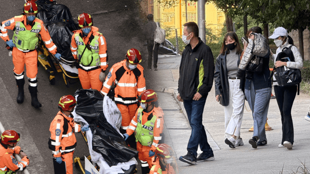 大埔宏福苑五級大火,造成至少逾百人死亡,多具遺體未能辦認。今日(28日)早上,食環署安排黑箱車到場,將多具遺體運往沙田富山公眾殮房暫時安放,待家屬辦理認屍手續。警方於下午陸續安排車輛接載死者家屬到殮房辦理認屍手續。有人在認屍後情緒激動,需要親友攙扶離場,場面令人傷感。截至下午3時,火警共造成128人死亡,當中一名死者為消防員,另有79人受傷。相關新聞 : 大埔宏福苑五級火|增至128死79傷 火警鐘未能有效操作 棚網初步檢驗達阻燃要求