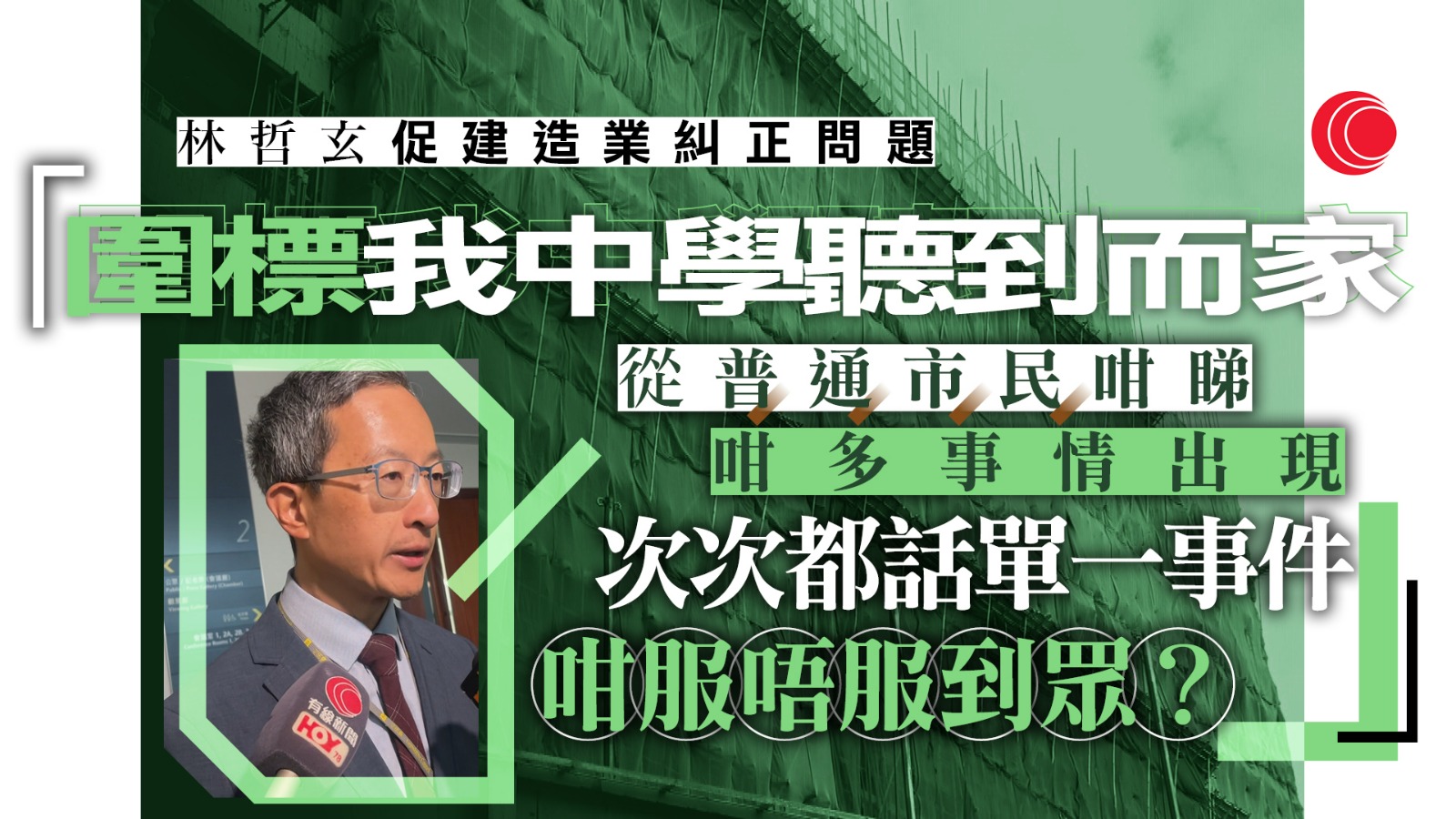 【有線新聞】針對立法會議員林哲玄批評建造業界「爛到不能再爛」,發展局局長甯漢豪不同意,認為不能「一竹篙打一船人」,林哲玄再回應,認為必須正視和糾正。