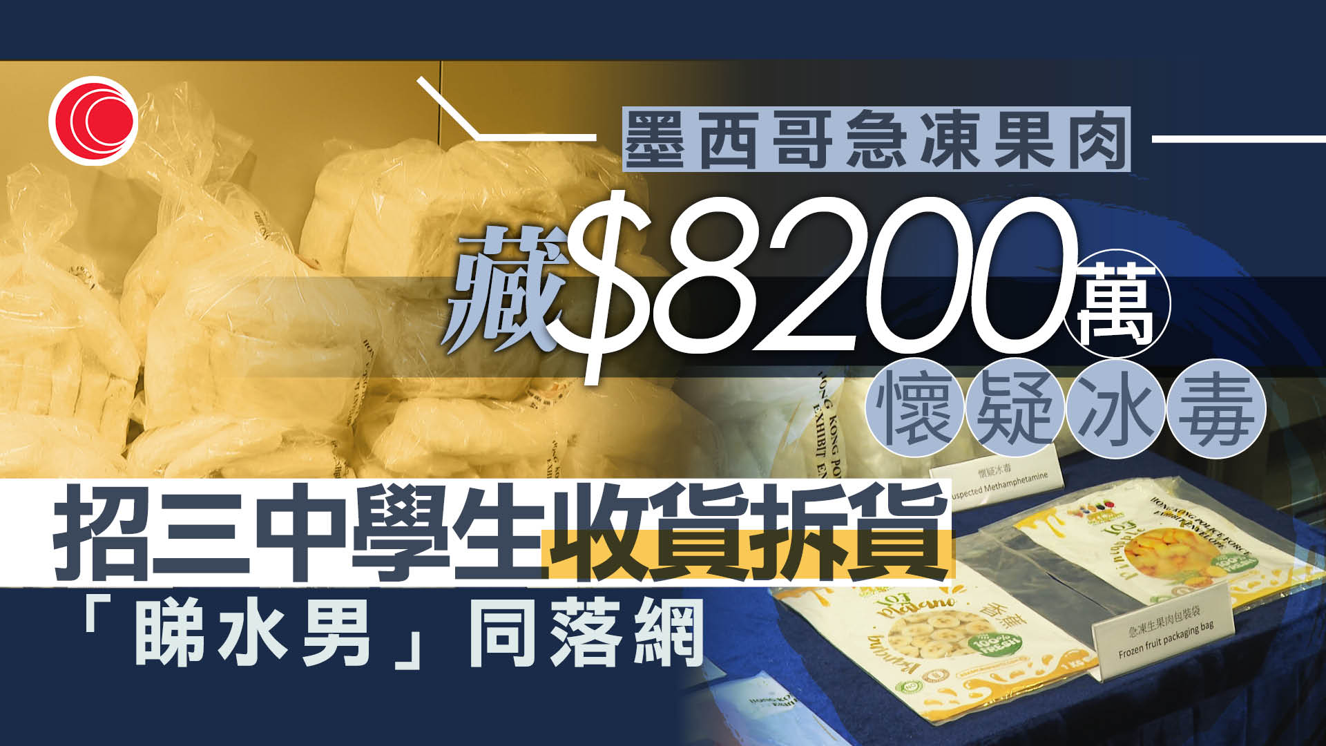 【有線新聞】警方拘捕三名16歲中學生以及一名男子,涉嫌販毒,檢獲約242公斤懷疑冰毒,市值超過8,200萬,為本年最大宗冰毒案。\n警方毒品調查科鎖定一批由墨西哥空運到港、報稱急凍果肉的貨物,調查後發現360個紙箱,當中70箱載有懷疑冰毒。販毒集團本周四委托物流公司將貨物運送至葵涌一個工廈單位外,其中三名被捕男子將貨物搬入單位,另外一名男子於大廈外徘徊,警方隨即展開拘捕,初步相信四人受金錢利誘而犯案。\n毒品調查科署理高級警司關駿軒:「他們利用青少年入世未深和急於賺快錢的心態,招募三名未成年人士擔當拆貨以及派送毒品較高風險的角色。案中成年男子站在大廈外,充當俗稱『睇水』的角色,以為走遠一點就能減低被捕風險,但這次拘捕行動正正反駁這種無知的想法。」