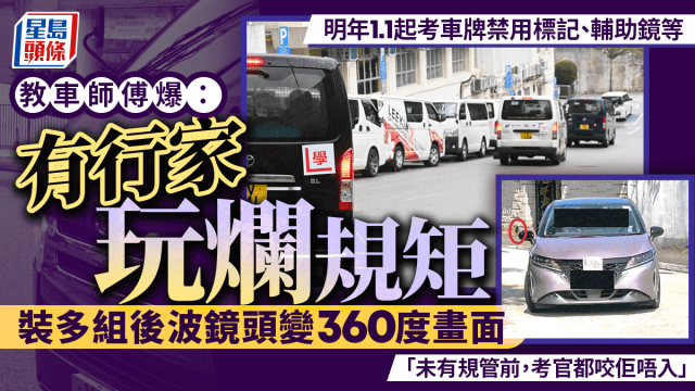 香港考車牌要「1 take pass」並非易事,運輸署公布最新私家車合併試合格率為三成,即七成考生「肥佬」。為協助考生,不少教車師傅會在車外加設各種標記、輔助鏡等,方便考生在「泊位、調頭」時「睇位」。不過,運輸署日前向駕駛教師公會及指定駕駛學校發通告,指由於部分考試車輛被非法改裝或加裝過大、過多附加裝置,影響考試公平性,故明年1月1日起採用新規定,並會向違規車輛作跟進。教車師傅:新規定下「泊位調頭」更易失手有逾十年教車經驗、不願具名的教車師傅向《星島頭條》表示,相關標記輔助已沿用數十年,笑言「分分鐘個考牌官當年都係靠標記去考(車牌)」。他指業界數月前獲悉新規矩,故排期元旦後考試的學生早已轉用新教法,但也留意到學生練習「泊位調頭」時,明顯更易失手。他坦言,新規定對學生影響最大,因為相較舊方法之下,他們「肥佬」重考或需「補鐘」機會大增。部分師傅出貓太誇張、玩爛規矩他透露,運輸署施施新規定的原因之一,是部分師傅「出貓」太誇張,例如在車輪附近安裝多組「後波(倒車)鏡頭」,讓考生掉頭時,能從鏡頭看到近乎360度畫面。由於早前未有規管,「考官都咬佢唔入」,他形容這些離譜師傅「玩爛咗規矩」,現時所有標記、輔助鏡等都不能用,令考生更難合格。運輸署:考試車禁用未經許可的輔助駕駛系統從運輸署向駕駛教師發出的通告附件可見,新規例下,考試車輛不得使用未經許可的輔助駕駛系統、不可加裝超越側鏡的「頭轆鏡」、發光燈、泥擋伸出物為一條堅硬鋁條等。他指,私家車方面,現時唯一可用作標記的是裝在車門上的防撞膠,但效果大不如前,學生調頭「扭軚」和「回軚」時機變得抽象、需要「靠估」令準繩度大減。他又稱新例下,調頭比泊位更難,因泊位只需靠一邊標記,加上有容錯空間,相對較準繩;相反,三手軚調頭講求「車慢軚快」,「隻手轉慢啲、用盡位置就無㗎啦」。新例下調頭比泊位更難:扭軚回軚時機變抽象對教車師傅的影響,他則表示不算大,但考生則較難「1 take pass」,或需補鐘再學。不過他亦擔憂,學生「肥佬」後未必跟同一師傅再學,或憂不合格是因師傅指導不佳,反問「咁點定奪係師傅定自身技術問題?」至於改例有否正面效果,例如讓學生從根本上學懂駕駛技巧,而非只靠標記「pass咗個試但唔識揸車」?他笑言「咁要考多幾次先得」,坦言「我哋只係教考車,起碼攞咗個牌,先可以下一步正式挑戰路面」,直言「鴨脷洲(試場)咁易考,考完咪又係唔識揸」。記者:陳俊豪相關新聞:考車牌|明年1.1起考試車禁裝「外掛」輔助 專家:惟有學多幾個鐘