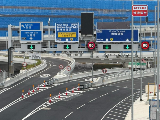 今日是中九龍繞道(油麻地段)開通後首個工作天。早上繞道交通暢順。昨日在繞道開通首日,有駕駛人士在啟德出口時較遲選定行車線,在「風琴位」切雙白線改道。運輸署在有關「風琴位」增設交通錐。運輸署昨日表示,小部分駕駛者因需時適應新的交通安排而在繞道啟德出口較遲選定行車線。署方已在繞道出口道路分支位置實施臨時交通措施,加強防止引致安全風險的駕駛行為,亦會在適合的位置增加道路標記,協助駕駛人士盡早選定行車線前往不同地區。