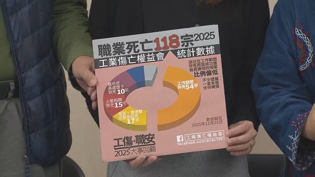 截至昨日,本港今年有至少118人在工作期間死亡,按年升逾五成半。據工業傷亡權益會統計,其中有16人是在大埔宏福苑大火中死亡,包括10名家庭傭工、五名建築工人和一名消防員。至於猝死個案涉及54人,當中逾七成是50歲或以上。另外有17宗死亡個案,涉及受困、遭撞擊或壓死;從高處或離地墮下致死的有10人。團體指,政府兩年前修訂《職安健條例》後,定罪被告罰款額平均上升八成,至大約15萬元,但認為未能反映事故嚴重性,促請當局公開僱主違反職安法例的定罪紀錄,讓僱員能掌握完整資訊。
