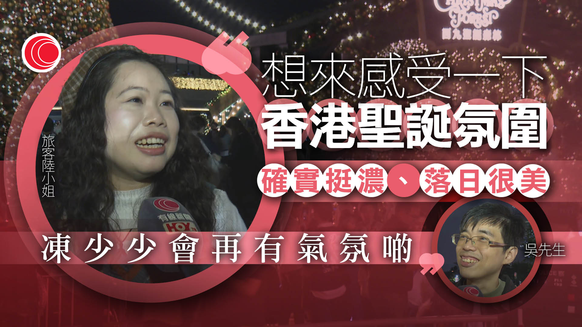 吳生:「這裏都不錯,冷一些會更好氣氛,人都多。(為甚麼更冷更好?)聖誕當然冷一點更好。」Isabelle:「很有氣氛,以及可以慶祝主耶穌誕生。(你在這裡看到甚麼,有甚麼喜歡?)覺得有些燈飾很喜歡,和這棵高的聖誕樹。」