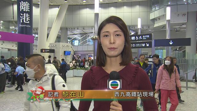 西九龍站入閘口一直有市民驗票,不過人數已經稍有減退,最高峰時逼到水洩不通。現場有職員舉牌協助疏導和協調,多班離港的列車車票都已售罄,包括去往天津、北京和西安等。因應假期的需求,高鐵已加開多班班次。有市民說,搭高鐵北上比坐飛機外遊更加方便。也有市民表示,在宏福苑大火之後,更珍惜眼前人,趁假期返回鄉下,與親人共度佳節。入境處早前預計,今日是出境高峰,而入境高峰是星期日,已增派職員維持過關秩序。