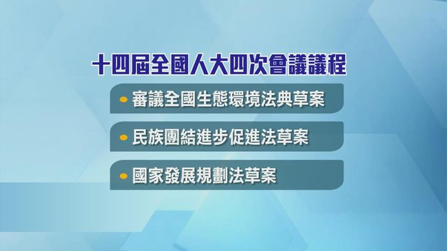 全國兩會明年3月4日及5日在北京召開,其中全國人大會議將會審查「十五五」規劃綱要草案,及審議三部重要法案。全國人大常委會上午表決通過,關於召開十四屆全國人大四次會議的決定,會議明年3月5日在北京召開,建議的議程,包括審議政府工作報告、審查國民經濟和社會發展第十五個五年規劃,即「十五五」規劃綱要草案。全國人大常委李慧琼稱:「重頭戲是『十五五』規劃綱要草案,因為未來五年發展,整個國家包括香港,會沿十五五規劃文件去實施。國家很強調在『十五五』規劃中,支持香港鞏固國際金融、航運、貿易中心,融入國家發展大局,我們亦要推動北部都會區建設,這些對香港未來發展都很關鍵。」立法會主席梁君彥指出:「習主席已囑咐香港要主動對接國家『十五五』規劃,這些是國家開給香港的考試題,也是國家支持香港發展更上一層樓的黃金機會。」全國人大會議還會審議全國生態環境法典、民族團結進步促進法及國家發展規劃法的草案。新華社指編纂生態環境法典,確認生態文明建設理論、制度及實踐成果。民族團結進步促進法草案,會明確民族團結進步的總體要求、重要原則及主體職責要求。至於國家發展規劃法草案,會對國家發展規劃的編制及審查等作規定。另外,政協第十四屆全國委員會日前亦召開主席會議,通過明年3月4日在北京召開全國政協十四屆第四次會議。