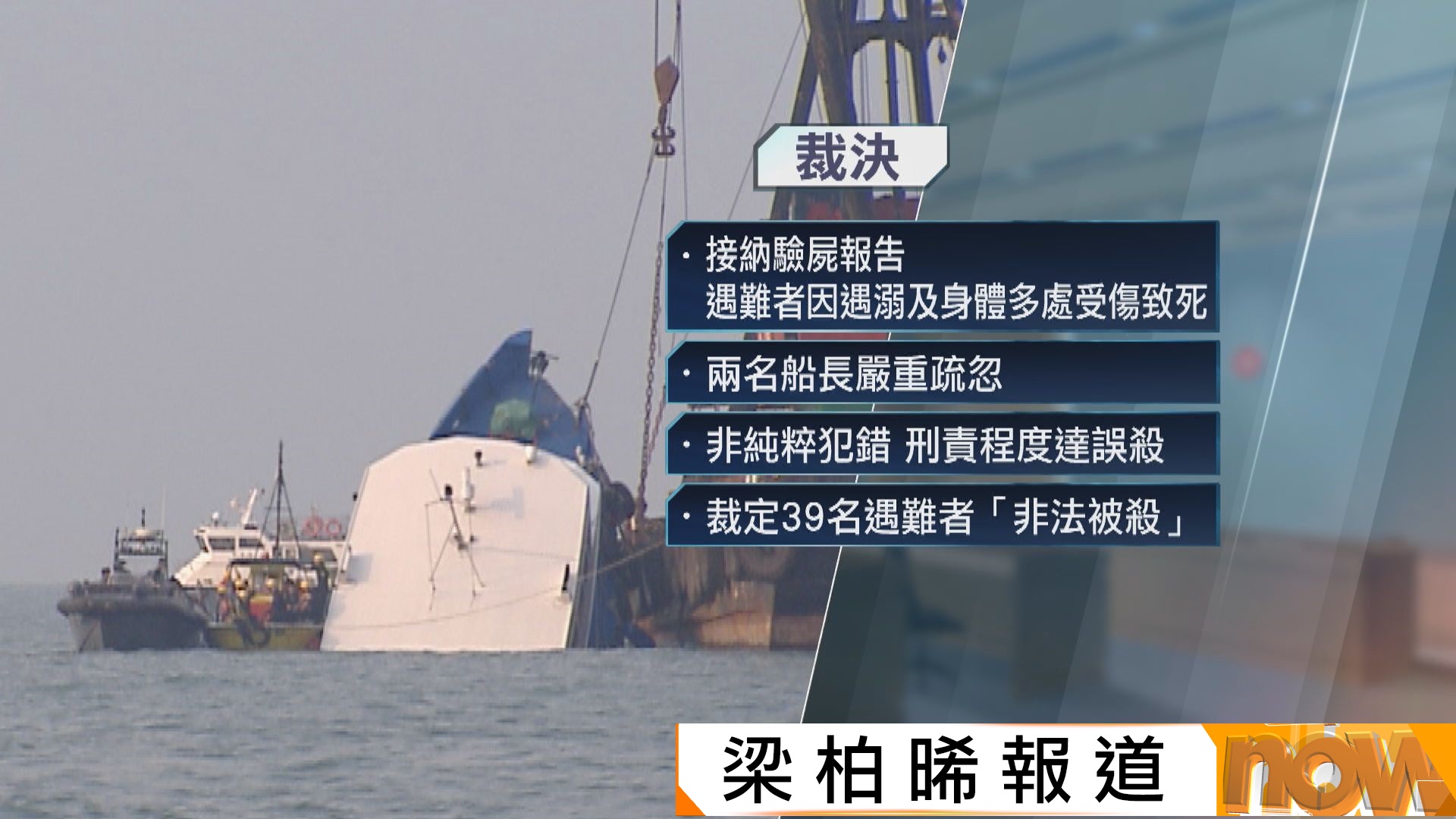 【Now新聞台】2012年南丫海難,死因庭裁定39名遇難者屬非法被殺。裁判官形容兩名船長有刑事責任的行為,程度達至誤殺,又相信南丫四號的造船廠董事是可靠證人,而造船圖則顯示要裝水密門是繪圖員畫錯。 趙炳全等七名遇難者家屬到庭聽取裁決,聽畢首日裁決,有家屬對部分內容感到極度失望。 南丫海難死難者家屬梁淑玲:「連專家報告都指,如果有那道水密門,就不會在短時間內沉沒,相信可以有船回頭拯救海難人士的時候,13年後的今日,你告訴我那道門不重要,我相信在座這麼多位都覺得匪夷所思。」 水密門是研訊其中一個重點,到底建造南丫四號的財利船廠是否知悉裝少了一對水密門。董事羅愕瑩供稱,設計原意是毋須安裝,但被質疑證供矛盾和不可靠。 死因裁判官周慧珠宣讀判詞,相信羅愕瑩沒捏造證供,雖然他對造船規則形容不準確,但證供顯示他考慮是否安裝水密門時有考慮造船規則,認為他是可靠證人。 裁判官又不同意裝少一對水密門會令船隻變得不安全的說法,認為設計合理、合規,並非意外犯錯,雖然圖則顯示南丫四號要安裝涉事的水密門,但裁判官認為是繪圖員畫錯。 裁判官又接納驗屍報告指,39名遇難者死因是遇溺及身體多處受傷,事件源自兩船相撞,屬兩名船長嚴重疏忽,行為並非純粹犯錯,而是有刑事責任的行為,程度達至誤殺,因此裁定39名遇難者屬非法被殺。 死因庭在2020年亦曾在不召開研訊下,裁定遇難者屬非法被殺。海泰號船長黎細明2015年已被裁定誤殺罪成,判監8年;南丫四號船長周志偉誤殺罪不成立,另一項海上危害他人安全罪成,判監9個月。 事發在2012年國慶夜,120多名港燈員工及親友乘坐南丫四號出海觀賞煙花,在南丫島對開海面被港九小輪海泰號撞擊後沉沒,造成39人罹難。相隔13年,死因研訊去年5月召開,原定去年11月裁決,但三度押後。 裁判官在庭上完整讀出判詞,宣讀全日仍未讀完,聆訊周四繼續。