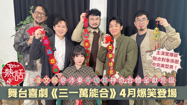 由凌文龍擔任創作策劃,朱栢謙與張志敏聯合執導,梁澤宇編劇,主演包括凌文龍、麥沛東、岑珈其、何洛瑤(Sica)及張志敏的爆笑舞台喜劇《三一萬能合》,將於4月10日起假灣仔藝術中心壽臣劇院上演10場5位喜感滿分的演員將以「外表缺失」為題,帶來一段爆笑與眼淚俱備、荒誕及溫度兼有的舞台故事。劇情講述三位各有內外煩惱的男人,為追求更完美的自己,決定接受科技融合手術,把3人的優點抽取、雜質剔除,合成一個「優化型男」。天馬行空的設定與爆趣情節,令幾位主演都大呼期待。門票2月25日正式開售。微醺大飯店1980s︱文青女神蔡思韵拍台劇 調整語調展現80年代巨星風采 ▼點擊圖片放大