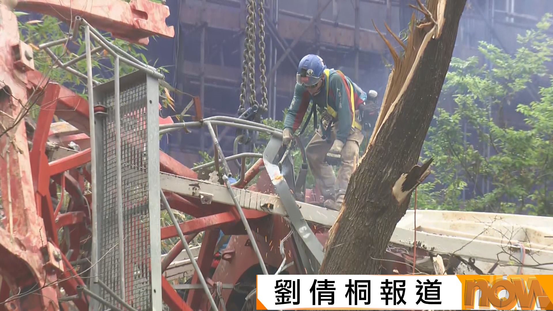 葵涌地盤天秤倒塌|工人早上清理倒塌天秤組件 當局料明早重開相關路段