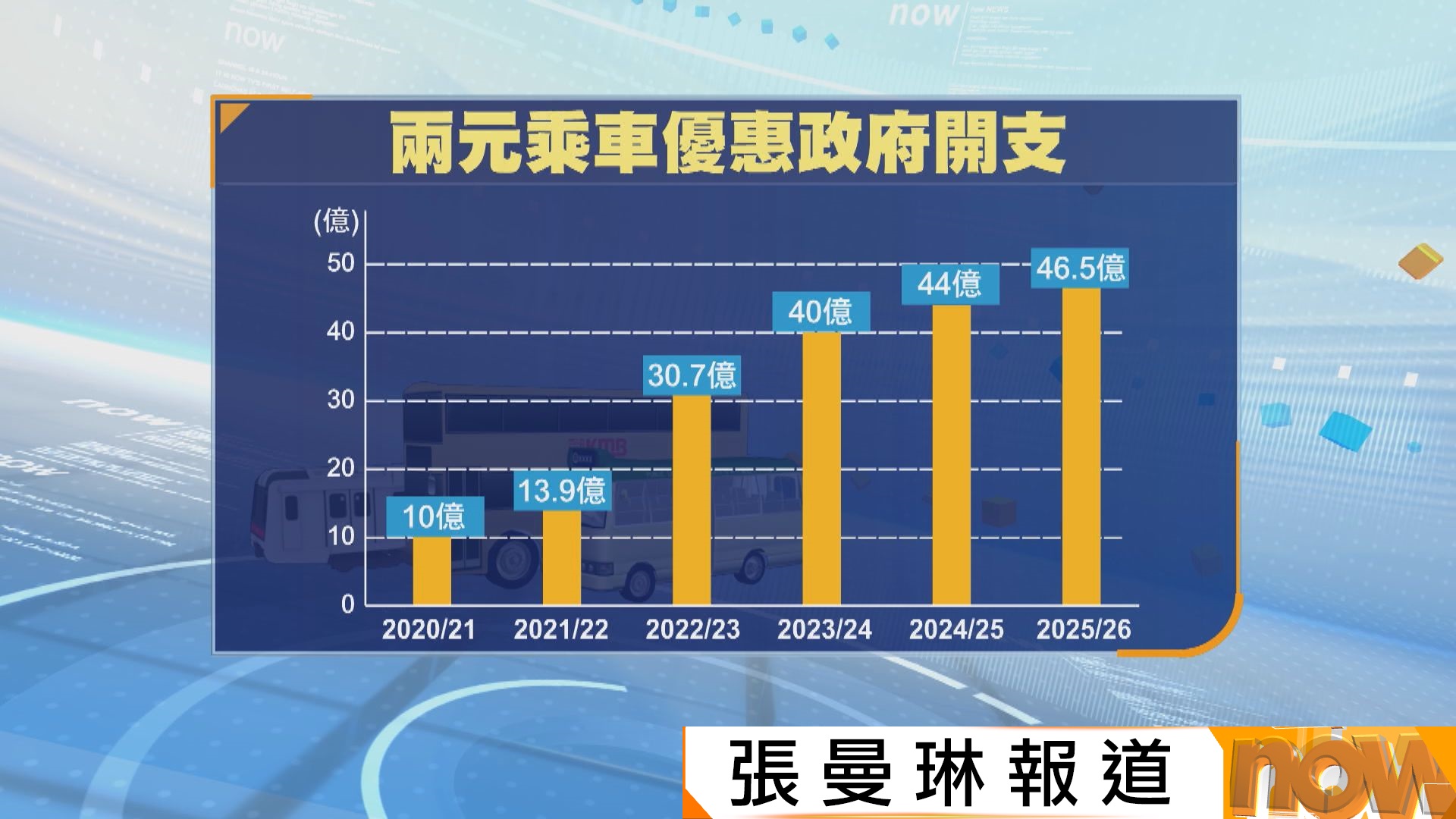 【Now新聞台】兩元乘車優惠2012年起推行,2022年放寬至涵蓋60至64歲人士,上年度開支高達46.5億元。有區議員就指,不少離島居民憂慮下月起加船費,即使有「兩蚊兩折」補貼仍會增加負擔。 兩元乘車優惠2012年6月起實施,65歲或以上人士乘大部分交通工具劃一收2元,當年受惠人次約64萬人,政府補貼了1.87億元,受惠人數和承擔費用有增無減。到2022年,合資格年齡下調至60歲,受惠人次推高至208萬,並擴展至紅色小巴等,開支已攀升至近14億元,兩年後受惠人士增至約272萬人次,政府的補貼開支大幅增加兩倍,至約44億元。 有區議員指,改革令計劃可長遠延續,會向市民多作解說。 灣仔區議員李碧儀:「未來兩個星期,作為區議員、關愛隊,都會配合政府加大力度宣傳,希望政府提供更多的宣傳資源給區議會、關愛隊,甚至地區日間長者中心,希望多做解說,令長者更快、更清晰知道新計劃將來的改變。」 東區區議員植潔鈴:「實施初期會否在巴士上加強識別哪些是兩元車、哪些是兩折車?我相信這也有效幫助長者適應新措施。巴士公司都應該負擔社會責任,長遠都應該研究按照距離收費,加快落實上落車要拍卡措施。」 6條主要離島渡輪航線在下月1日起調整收費。 而6條主要離島渡輪航線在下月1日起調整收費,長者若周日及公眾假期經中環坐快船去長洲或梅窩,將由原本付2元船費,變相增至分別付9.5元和9.7元,增幅超過三倍。 離島區議員劉展鵬:「有很多長者向我們反映,由2元增至假日8、9元時,負擔的確重了很多。是否承辦商、船公司都要負起社會責任?可能他們其實只需要設計專門給長者的月票或多程票,多給1、2元的優惠,島上的長者都覺得可以接受。」 政府回應稱,即使離島航線船費加價,當局仍會資助八成費用,認為市民負擔餘下兩成是非常優惠的安排。