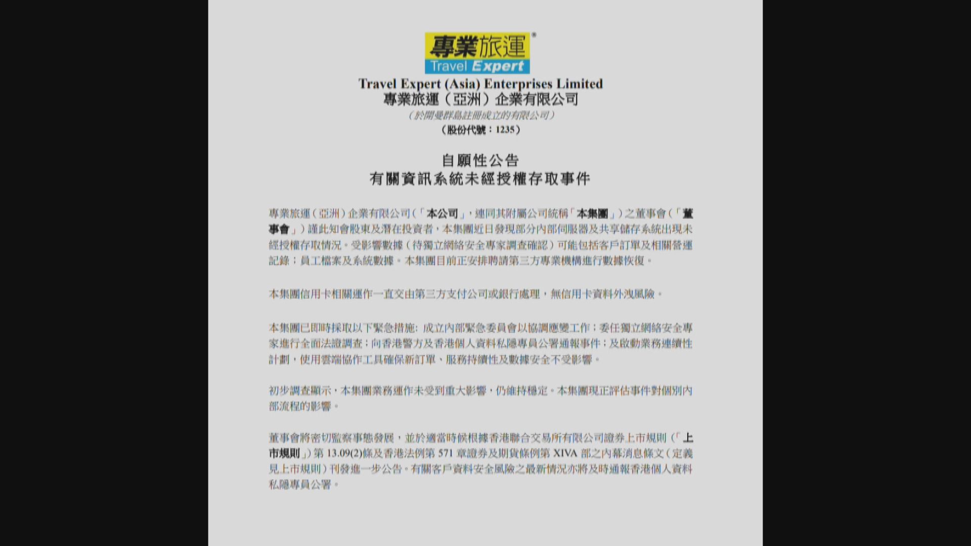 專業旅運疑客戶訂單等被未經授權存取 暫未發現信用卡資料外洩風險
